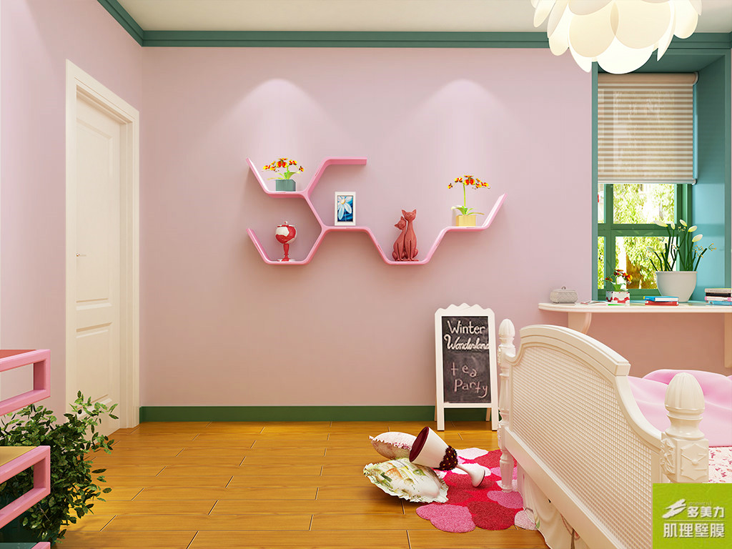 兒童房墻面裝修首選當然是肌理壁膜,這是為什么呢?主要有以下三點: