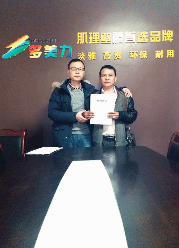 日,來自內(nèi)江的周總正式與南充多美力涂料廠簽訂內(nèi)江市威遠(yuǎn)縣區(qū)域的代理協(xié)議,對(duì)于周總的加入表示真摯與熱烈的歡迎!